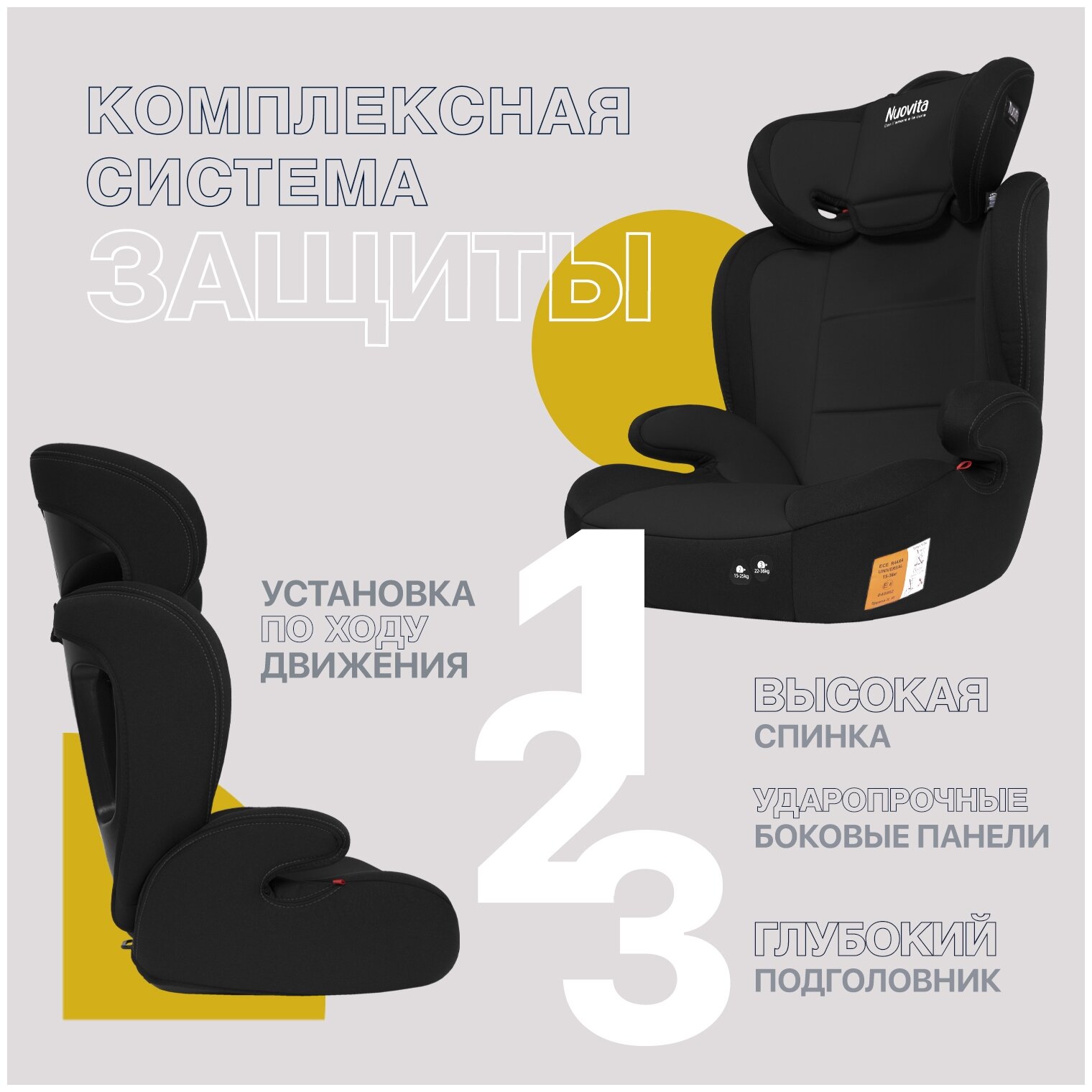 Купить Автокресло детское Nuovita Maczione N23-1, группа 2/3, от 3,5 до 12 лет, от 15 до 36 кг/ трансформируется в бустер (Nero/Чёрный )