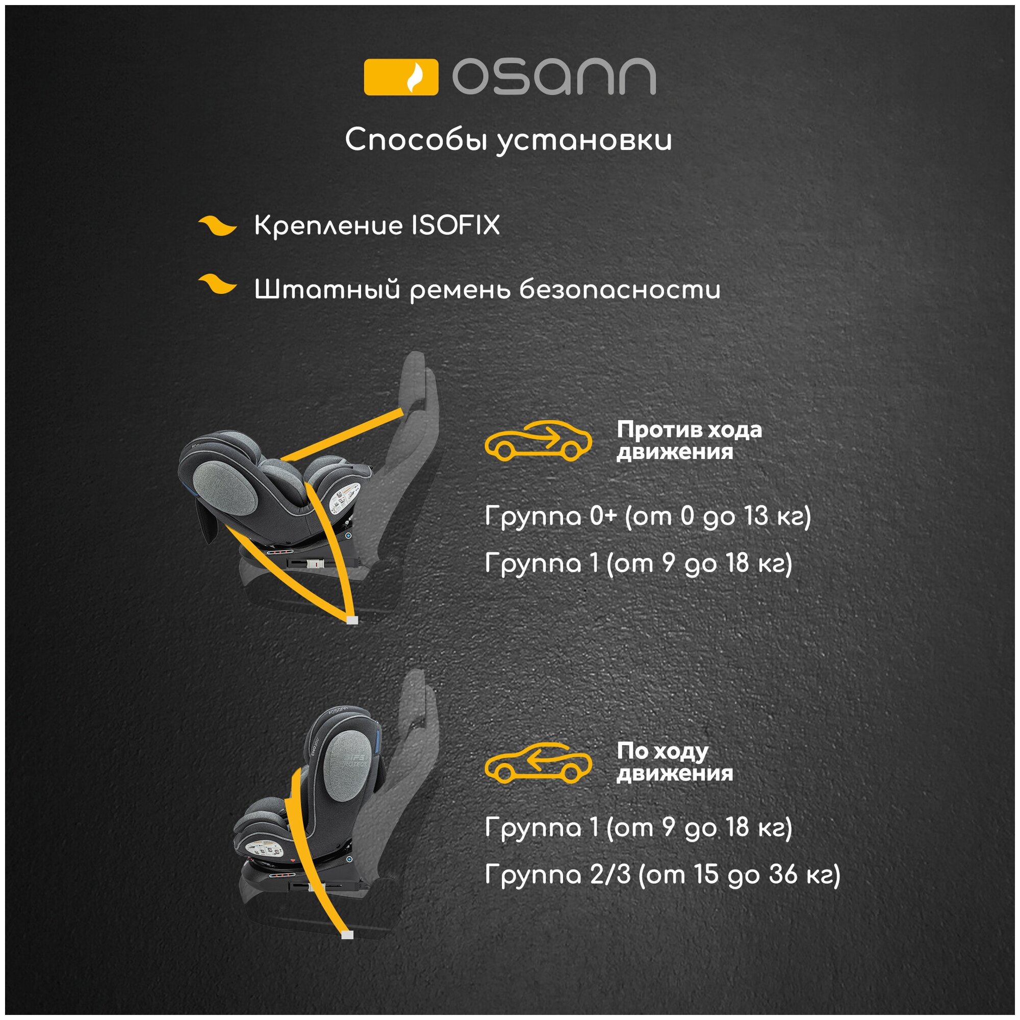 | Установка | спиной или лицом вперед |