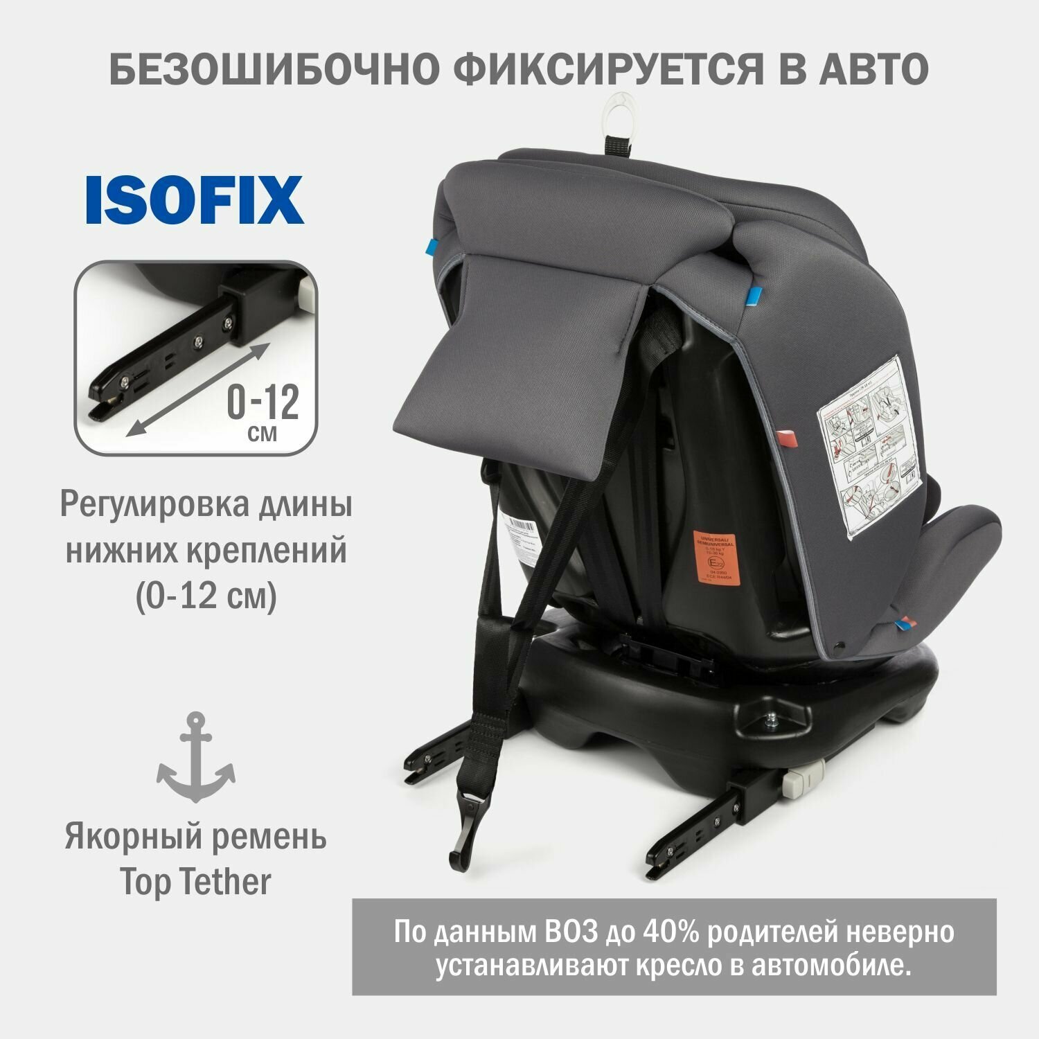 Автокресло детское поворотное Siger Престиж IsoFix от 0 до 36 кг, цвет графит