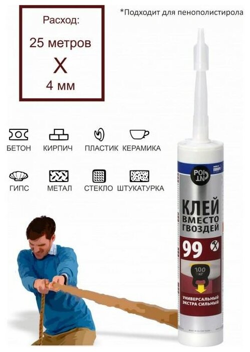 Клей вместо гвоздей POINT 99, экстра сильный, 280 мл 23052 интересное:
