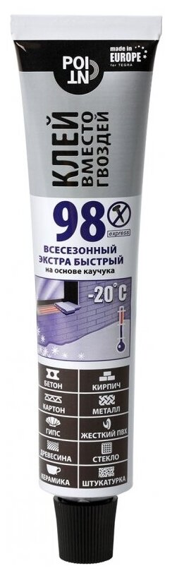 Клей вместо гвоздей POINT на основе каучука, 98 в шоу-боксе, 80 мл 03-1-0-198 интересное: