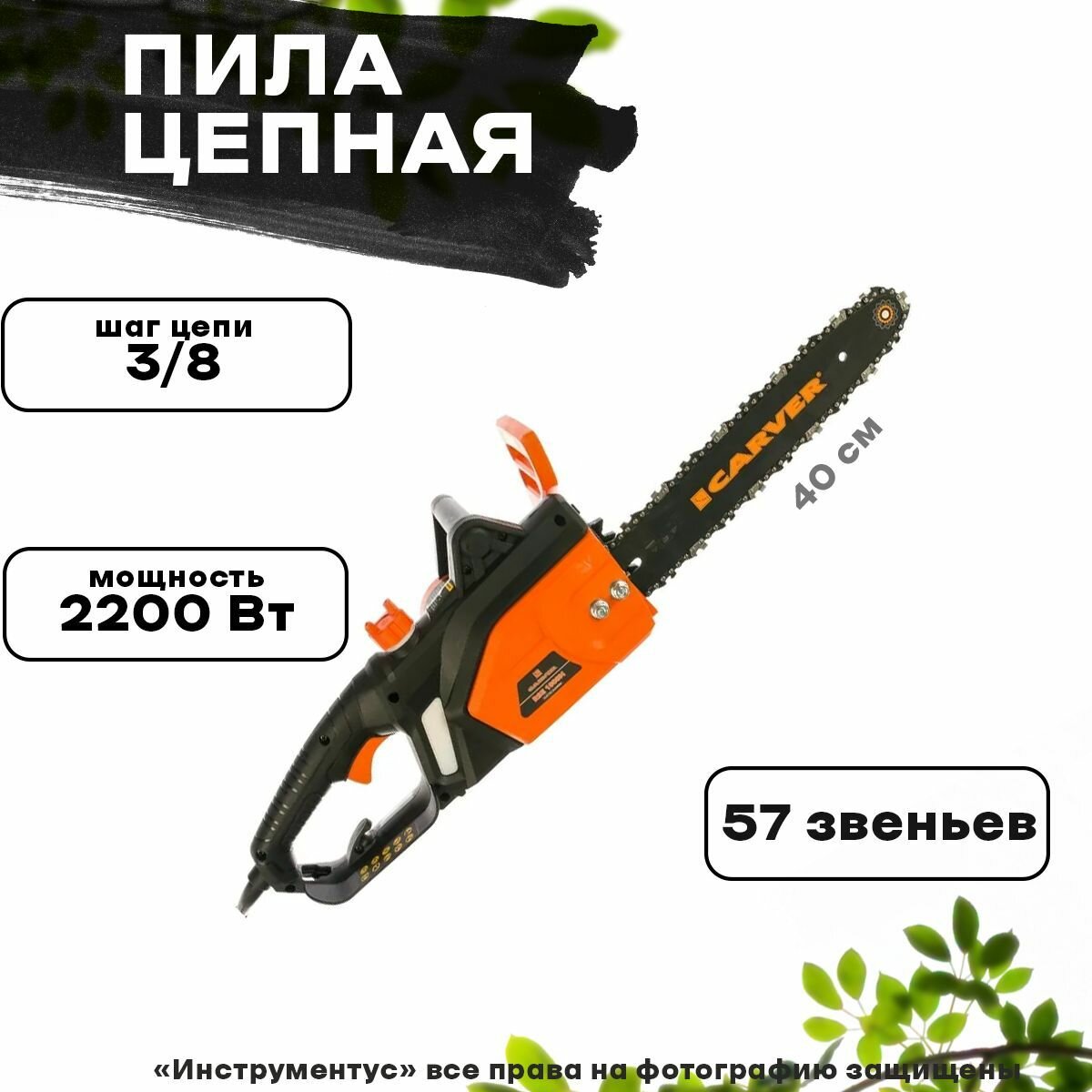 Пила цепная электрическая CARVER RSE 2200М электропила 2,0кВт шина 40см цепь 57 зв-3/8-1,3мм