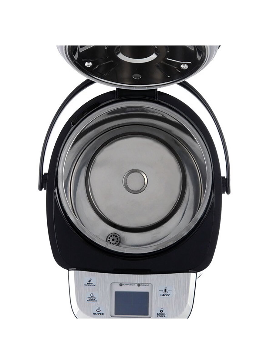 | Плюсы: | Хороший дизайн, сенсорные кнопки, два режима налива воды, несколько режимов поддержания температуры, подсветка, большой объём (4,5л), автонасос, дисплей показывает всё, что происходит с термопотом и всё это за 2600р. |