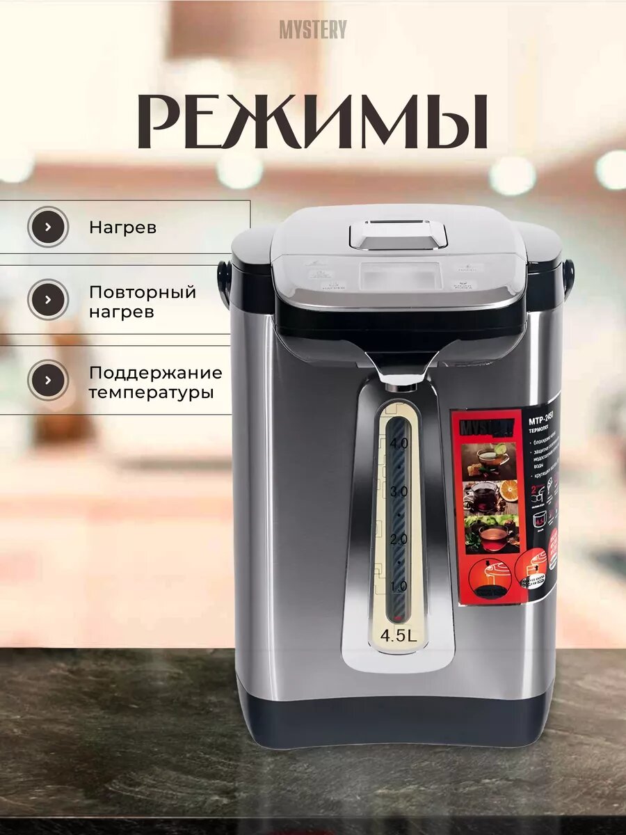 Термопот MYSTERY MTP-2450/4,5л/серебристый, черный