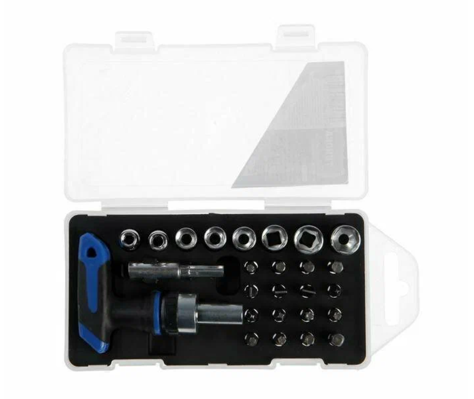 | Минусы: | Внутренности трещётки разлетелись после первого применения. Во время недолгой работы трещётка крайне туго прокручивалась, что делала её назначение невозможным в использовании. Биты плохого качества. У примыканий просто невозможный люфт.