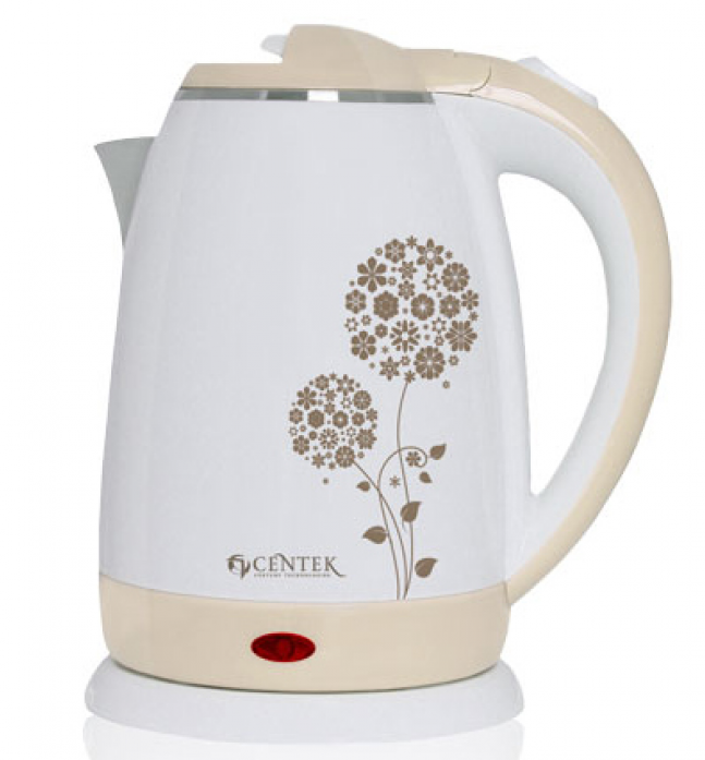 Чайник Centek CT-1026 BG (бежевый + рисунок) 1.5л, 2000W, двухслойный корпус - металл внутри и пласт