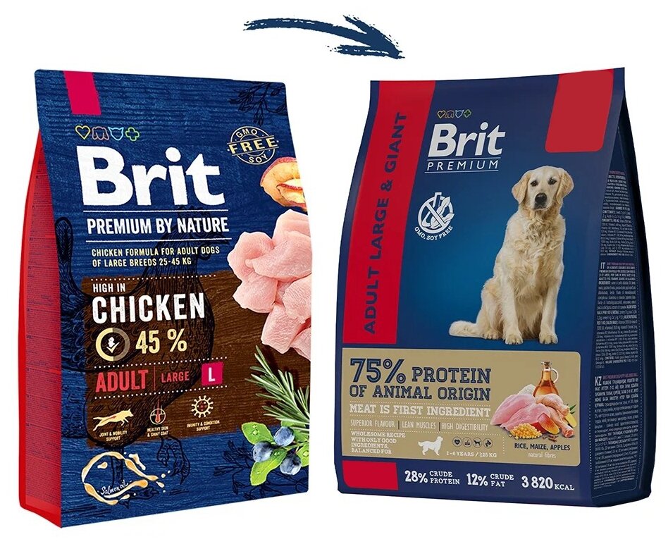 Корм Brit Premium Adult Large & Giant для собак крупных и гигантских пород, с курицей, 3 кг
