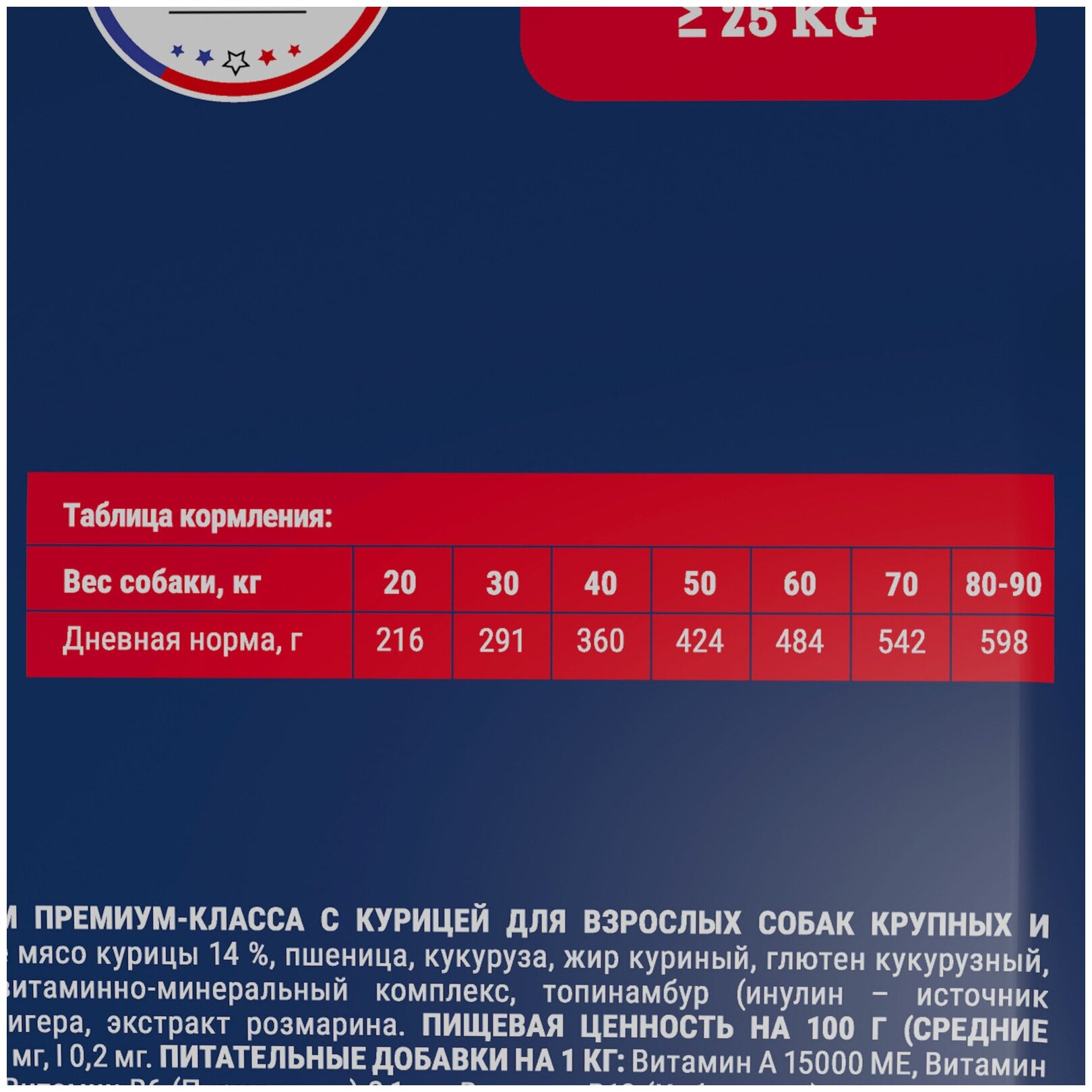 Сухой корм премиум класса с курицей для взрослых собак крупных и гигантских пород