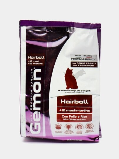Купить Сухой корм для кошек Gemon Cat Hairball con Pollo e Rico, для вывода шерсти, курица с рисом, 400 г