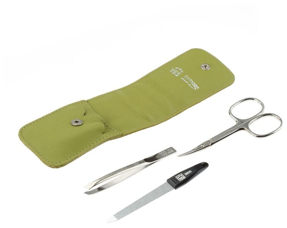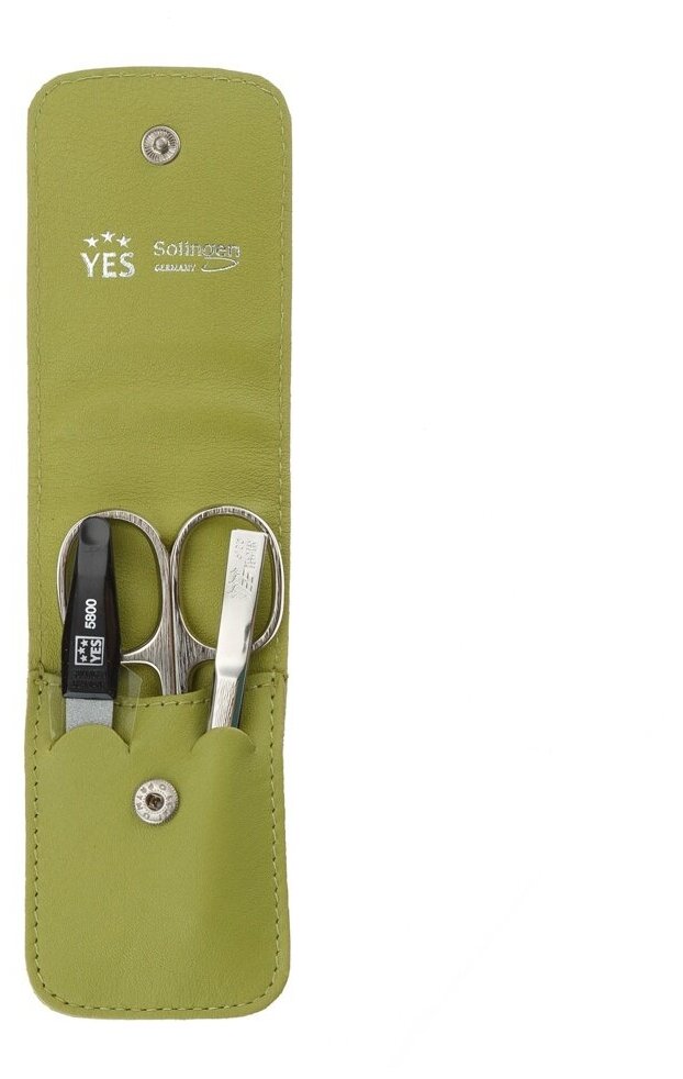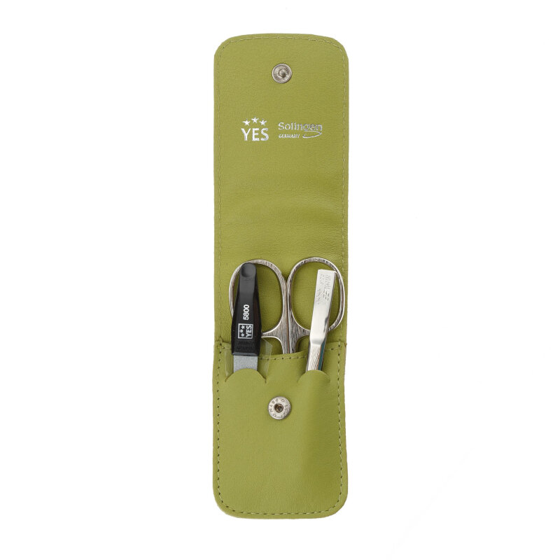 Yes 9026 Маникюрный набор yes, 3 пр. футляр: натуральная кожа, цвет зеленый