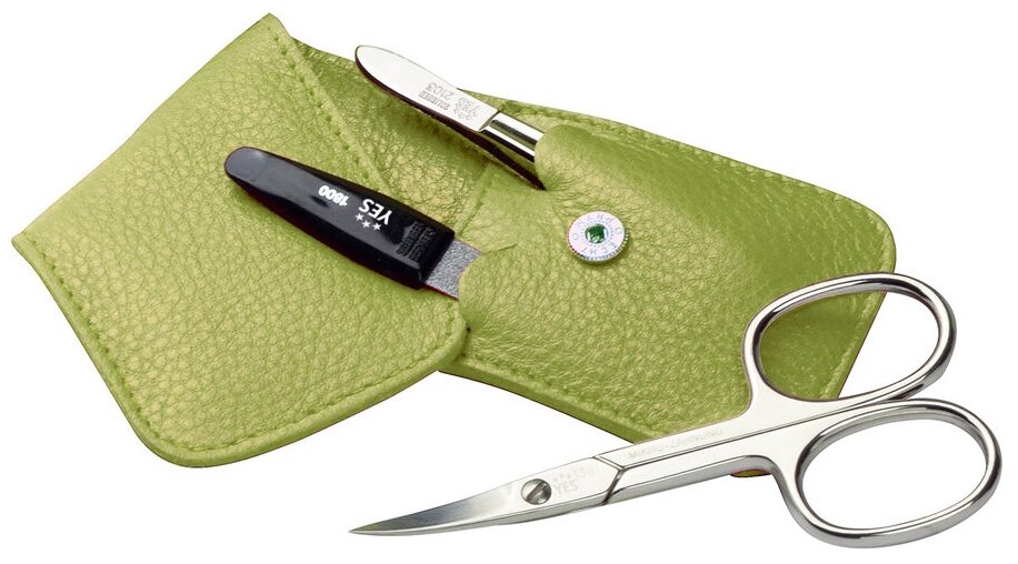 Купить Маникюрный набор YES, 3 пр. Футляр: натуральная кожа, цвет зеленый