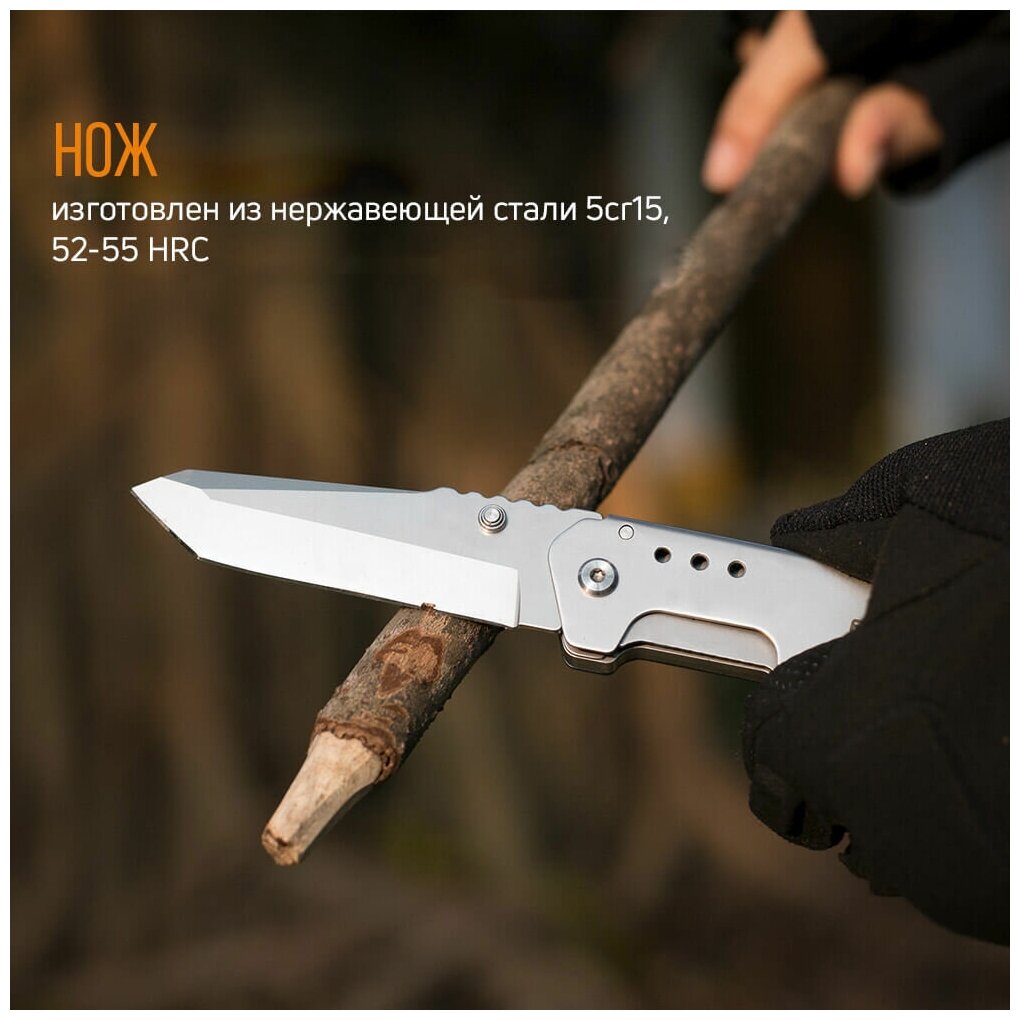 | Плюсы: | Выполняет две самые необходимые функции в походе: нарезать и отрезать) |
