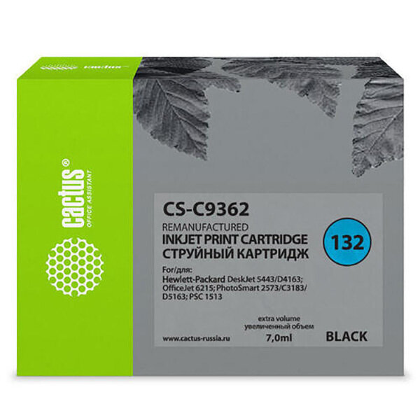 Картридж Cactus CS-C9362 №132 для HP DJ 5443/D4163/DJ 6215/PS 2573/C3183/D5163/PSC 1513, черный