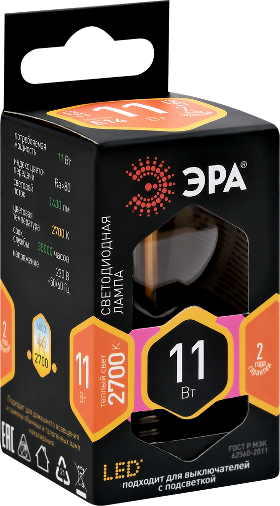 СохранитьЭРА F-LED P45-11w-827-E14 (филамент, шар, 11Вт, тепл, E14) интересное: