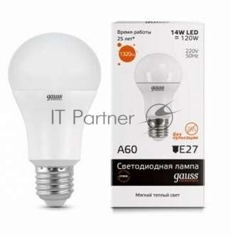Лампа светодиодная Gauss Elementary A60 20Вт цок.:E27 груша 220B 3000K св.свеч.бел.теп. A60 (упак.:1шт) (23219)