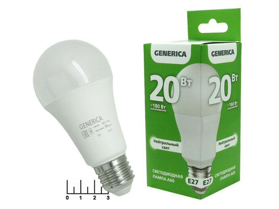 Лампа светодиодная Generica A60-20, E27, A60, 20 Вт, 3000 К