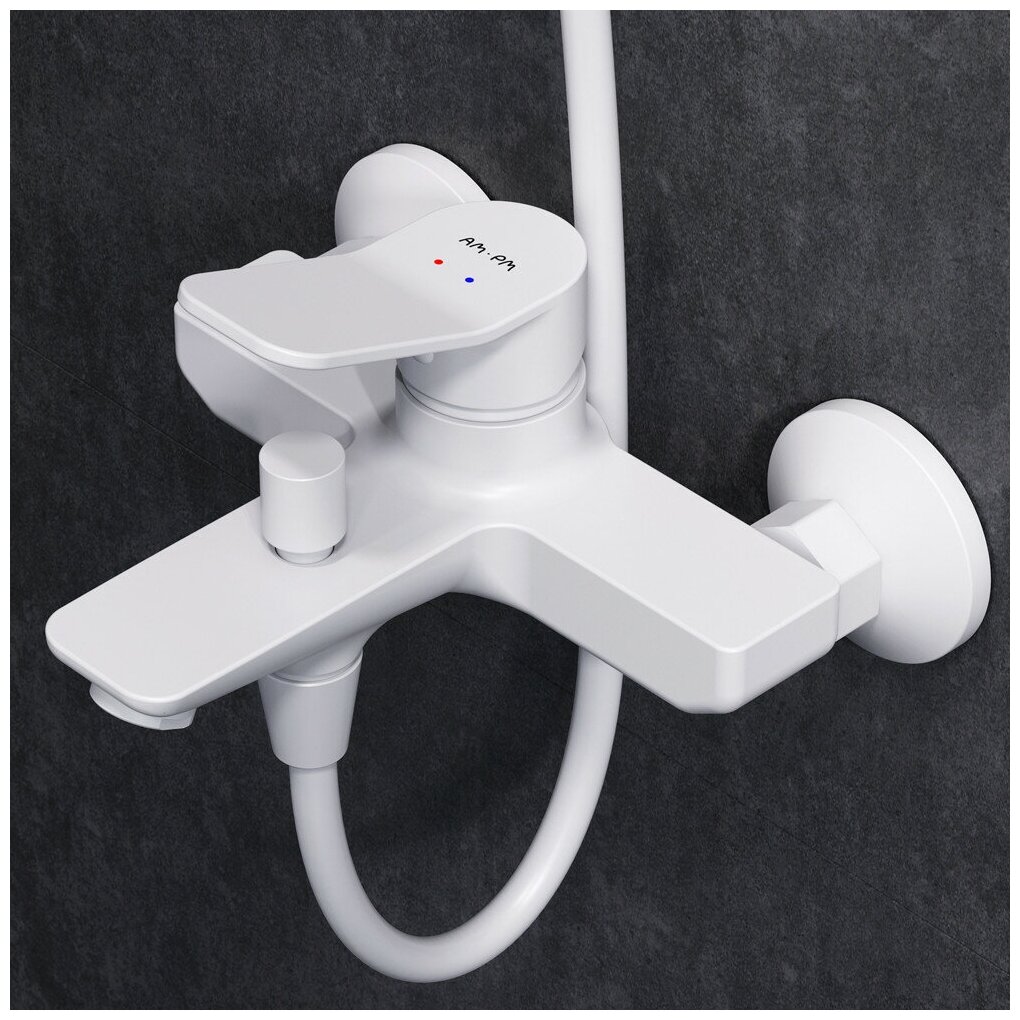 Набор смесителей 2 в 1 AM.PM X-Joy F43885A14 белый матовый, смеситель для ванны/душа, верхний душ