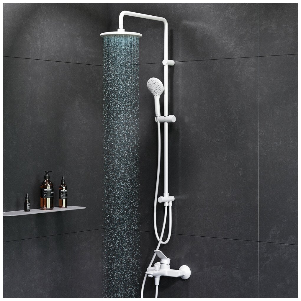 | Особенности | S-образные эксцентрики / аэратор / держатель душевой лейки / защита от скручивания / поворотный излив / регулируемый верхний душ / система быстрого монтажа |