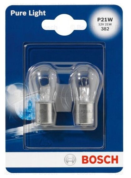 Комплект ламп накаливания блистер 2шт P21W 12V 21W BA15S PURE LIGHT (стандартные характеристики) BOSCH 1987301017