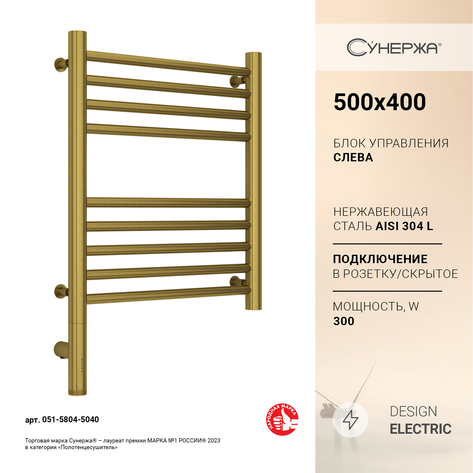 Электрический полотенцесушитель Сунержа Богема 3.0 прямая 500x400 МЭМ Лев. арт. 00-5804-5040
