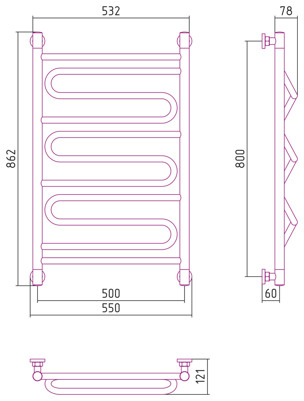 Водяной полотенцесушитель Aquanet Mauro(г2) 800x500