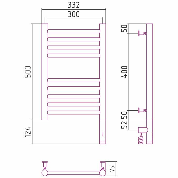 Электрический полотенцесушитель Сунержа Богема 3.0 прямая 500х300 птэн без покрытия
