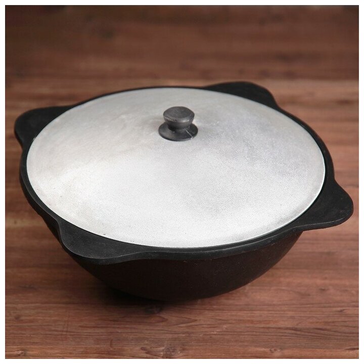Казан с крышкой чугунный, посуда для плова, 10 л, плоское дно интересное: