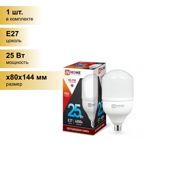 Лампочка светодиодная, белый нейтральный свет LED-HP-PRO 25Вт 230В E27 4000К 2380Лм, IN HOME (арт. 4690612031057) - 1 штука