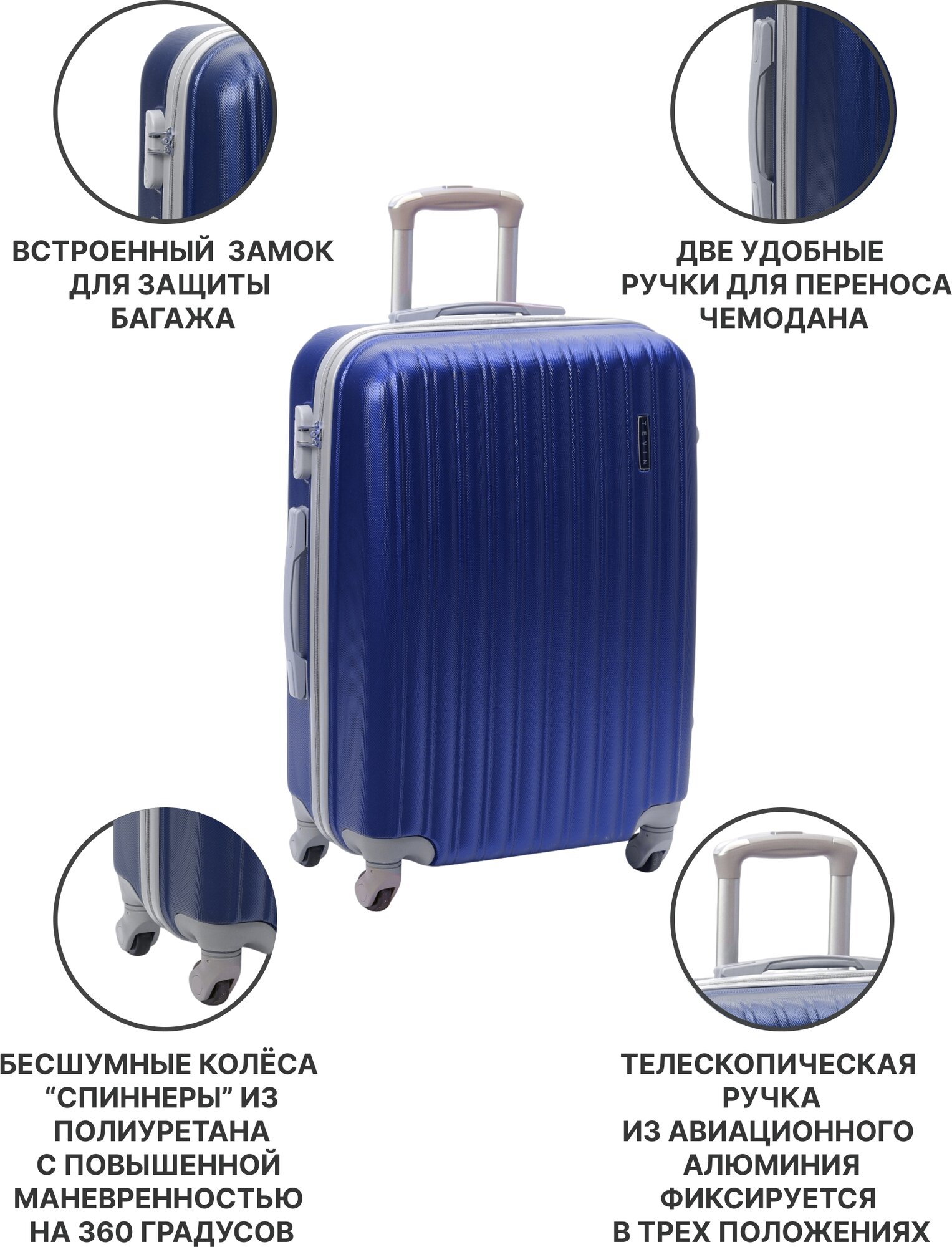 Чемодан на колесах дорожный большой семейный багаж для путешествий детский l Тевин размер Л 73 см 105 л легкий и прочный abs (абс) пластик Синий яркий
