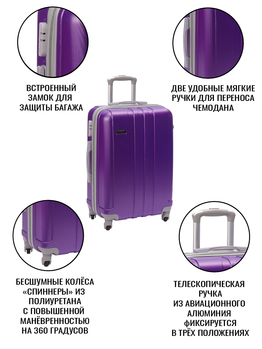 Чемодан на колесах дорожный огромный семейный багаж для путешествий l+ Тевин размер Л+ 76 см 120 л прочный и легкий abs (абс) пластик Фиолетовый