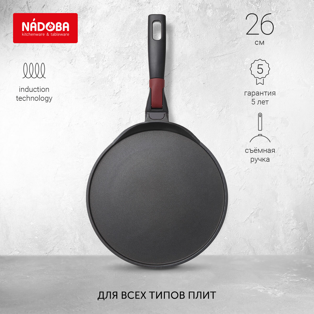 Сковорода блинная Nadoba Vilma 728221, съемная ручка, 26 см