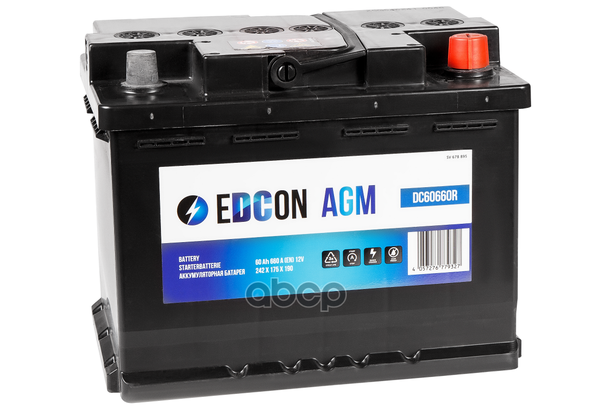 аккумуляторная батарея 19.5 17.9 евро 60Ah 660A 242 175 190 B13 AGM DC60660R EDCON