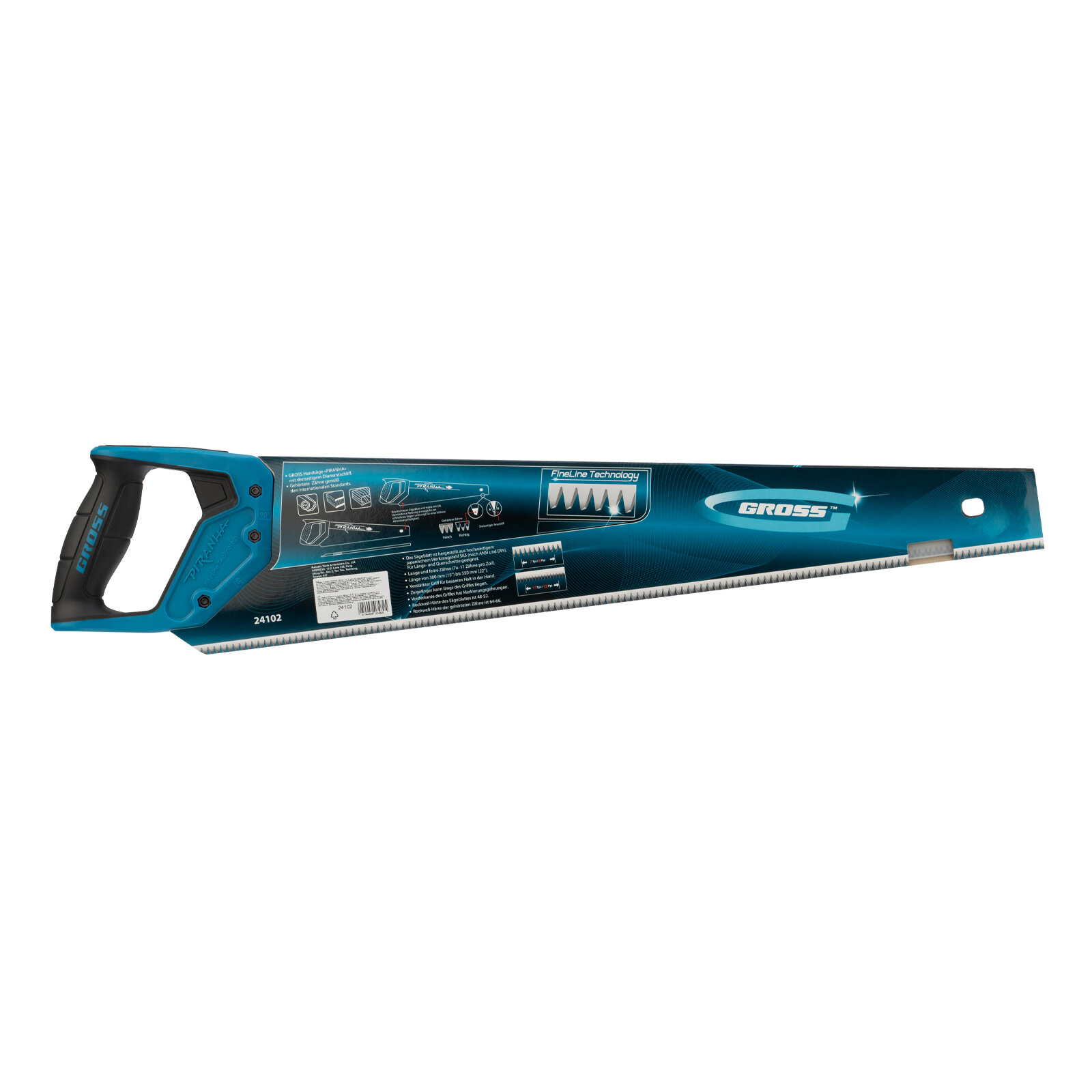 Ножовка по дереву Piranha , 550 мм, 7-8 TPI, зуб-3D, каленый зуб, двухкомпонентная рукоятка Gross 24102