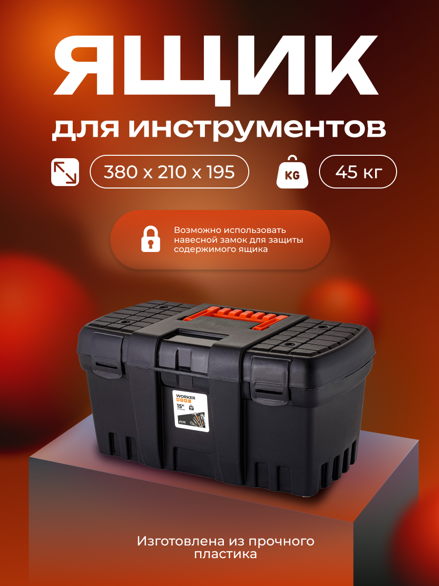 Ящик для инструментов Worker 15" черный со свободным внутренним пространством интересное:
