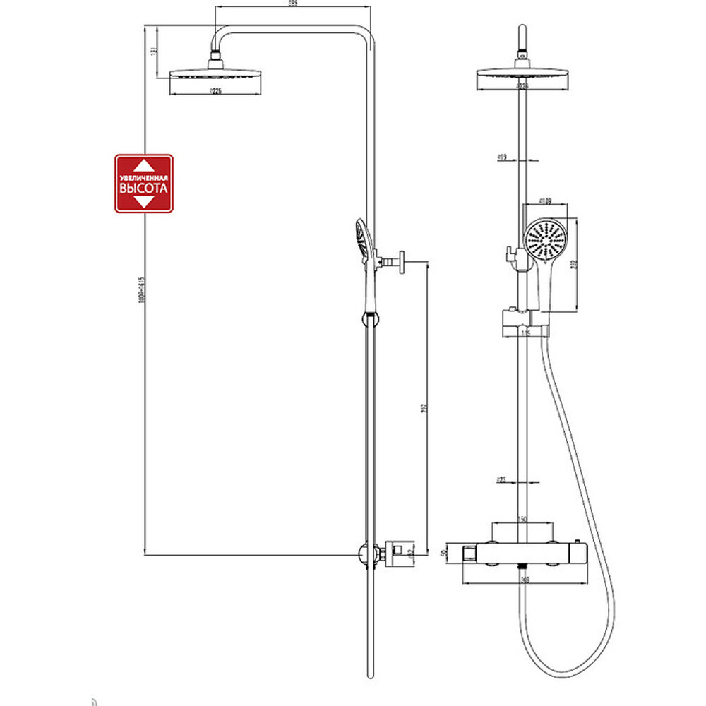 | Дополнительная информация | диаметр верхнего душа - 22,6 см, диаметр лейки - 10,9 см, длина кронштейна - 38,5 см. |