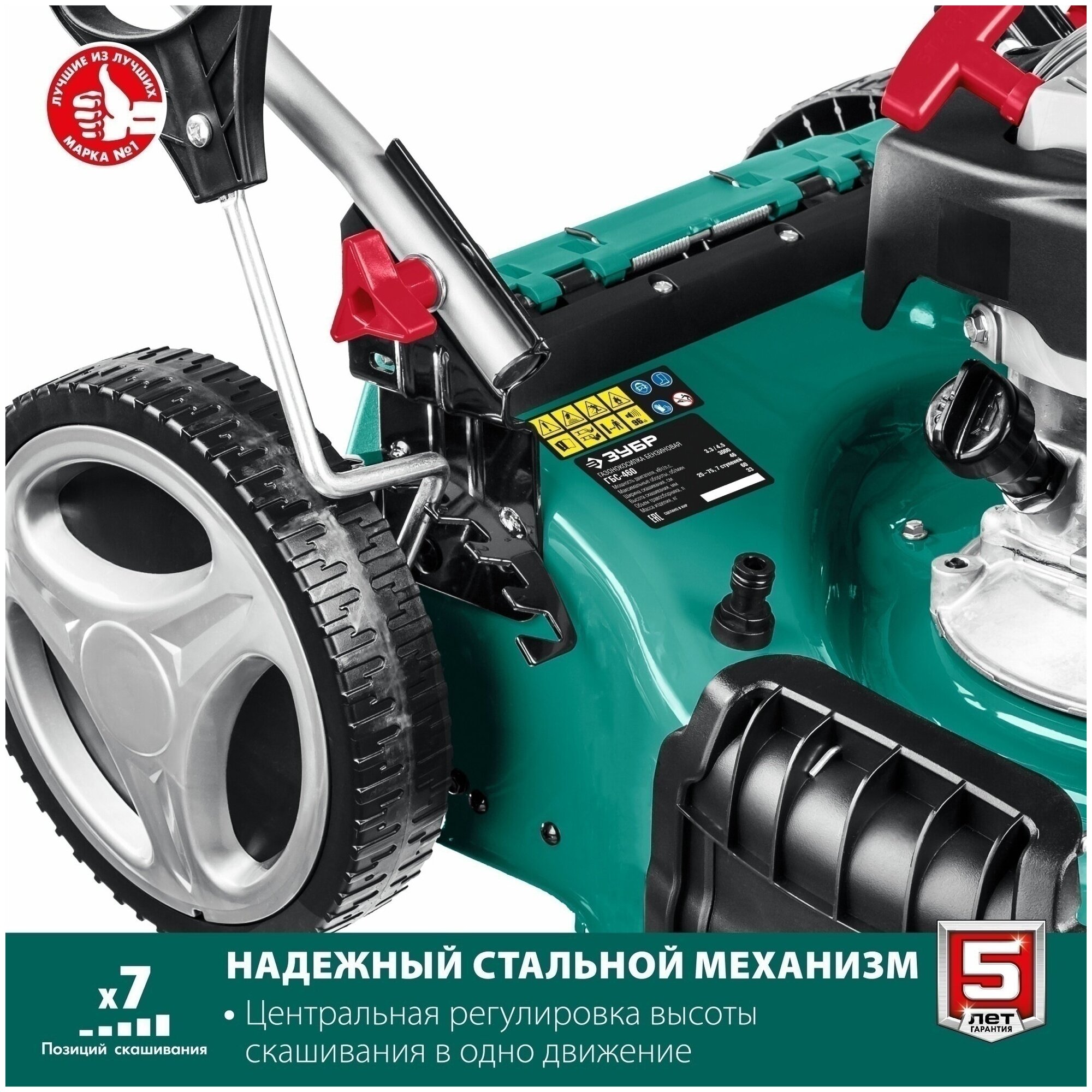 Купить Самоходная бензиновая газонокосилка ЗУБР ГБС-460 4,5лс мульчирование 460мм ширина скашивания центральная регулировка высоты