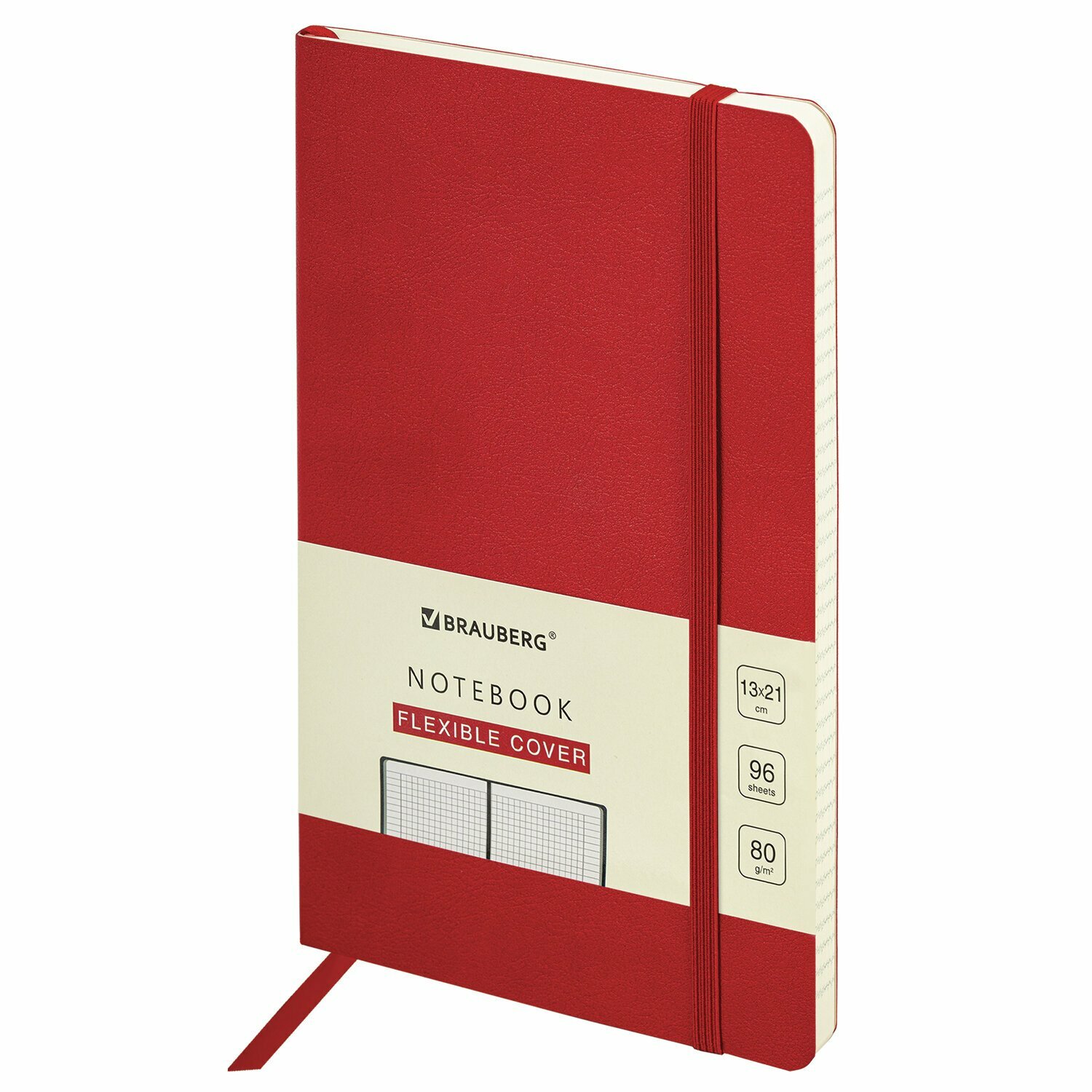 Блокнот А5 (130х210 мм), BRAUBERG ULTRA, под кожу, 80 г/м2, 96 л, клетка, красный, 113006