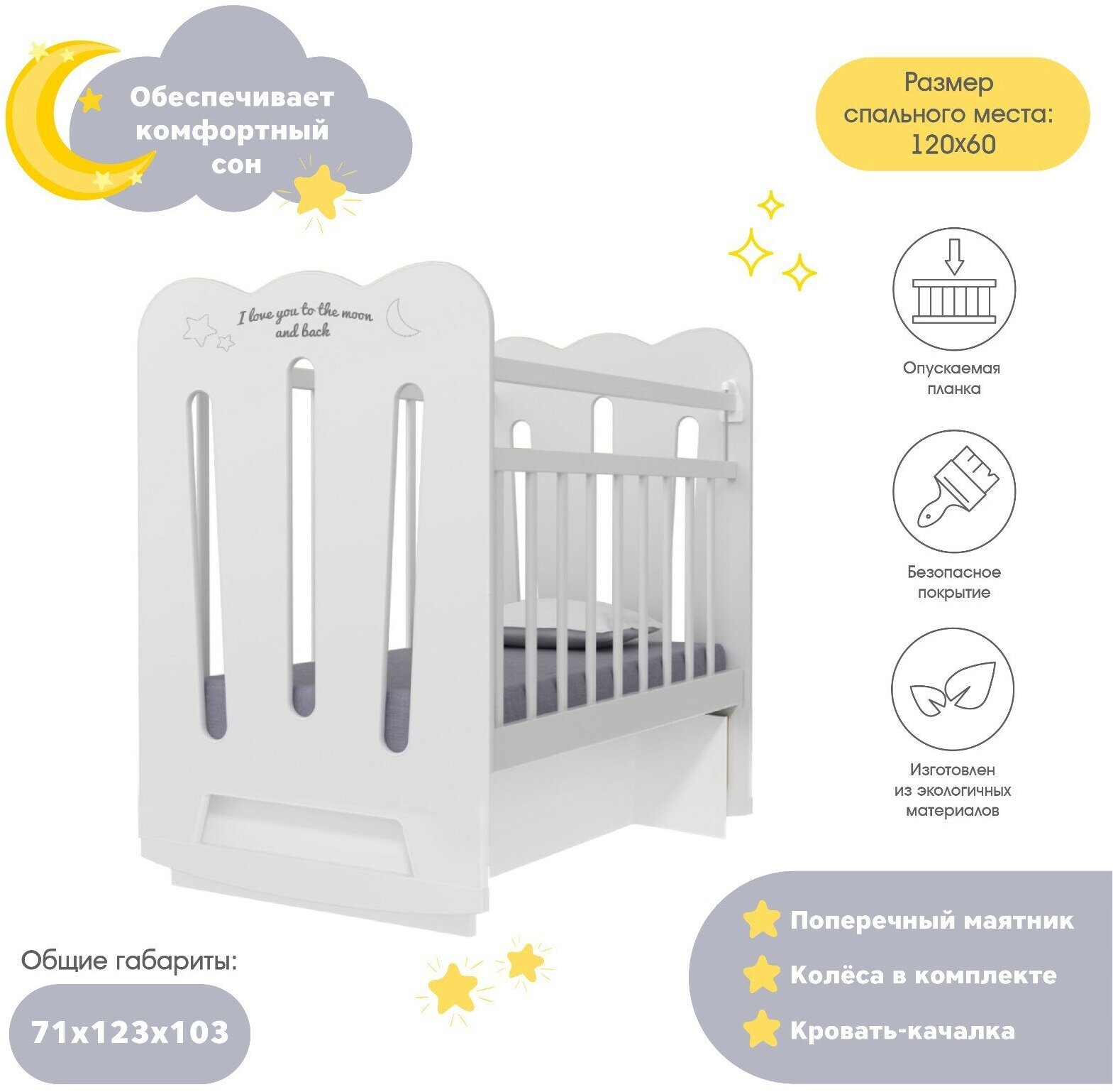 Кровать детская Desire колесо-качалка с маятником (белый) (1200х600) ВДК 4790597 .