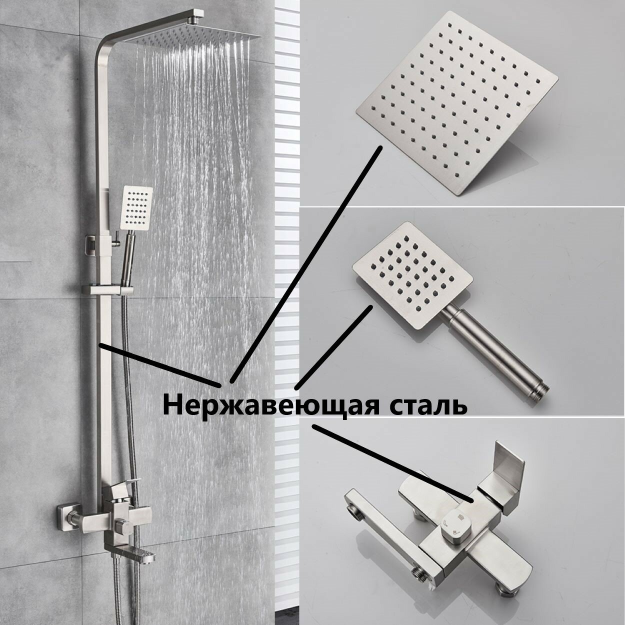 | Материал душевой стойки | нержавеющая сталь |