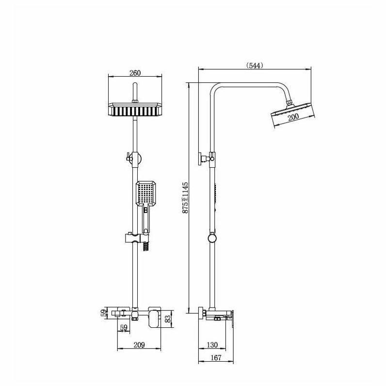 | Комплектация | душевая стойка / Смеситель / излив / установочный комплект / штанга / верхняя лейка / ручная лейка / шланг |
