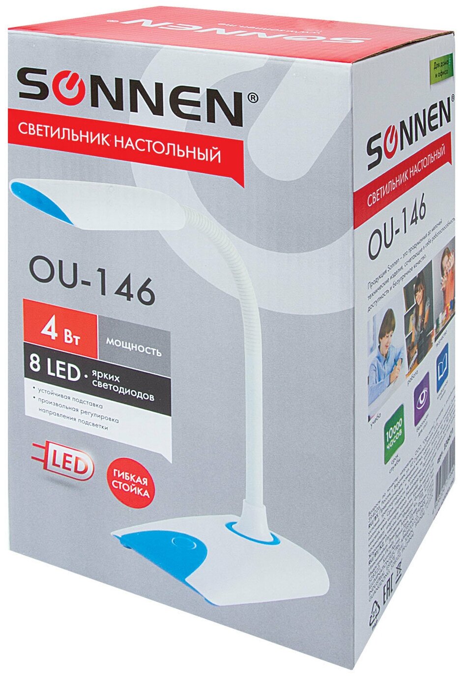 Настольная лампа-светильник SONNEN OU-146, на подставке, светодиодная, 4 Вт, белый/синий, 236671 /Квант продажи 1 ед./
