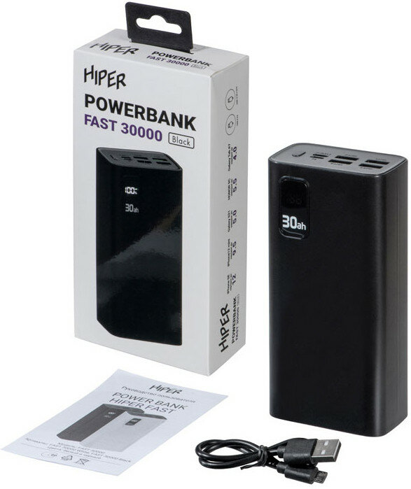 Купить Портативный внешний аккумулятор HIPER FAST 30000, черный