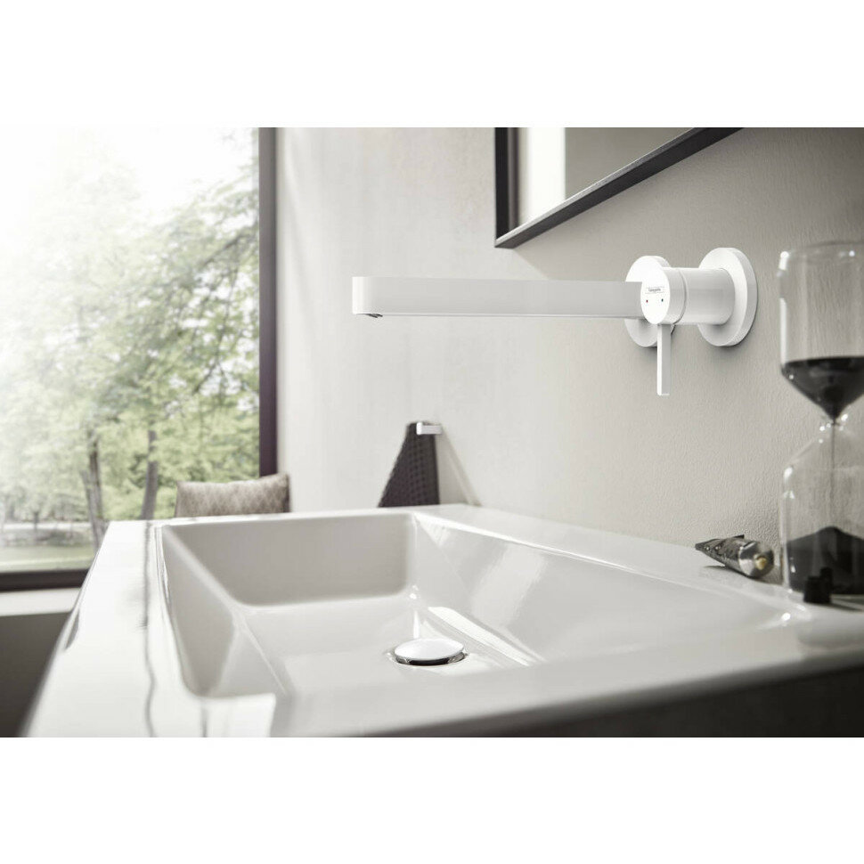 Купить Смеситель для раковины Hansgrohe Finoris однорычажный, скрытого монтажа, настенный, с изливом 22,8 см 76050700 белый матовый