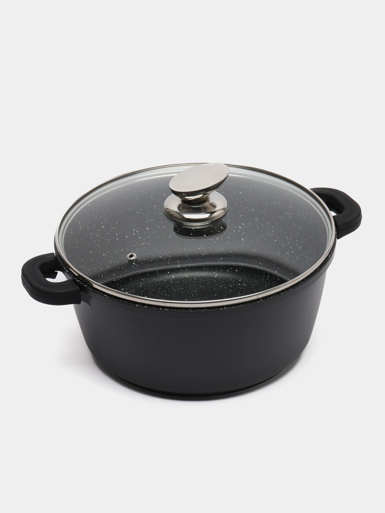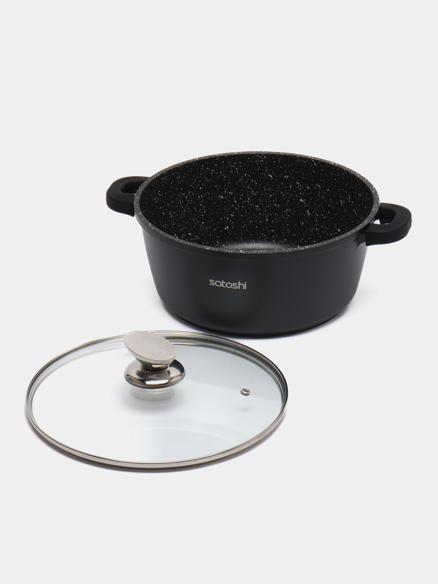 Кастрюля SATOSHI лион 6,3 л со стеклянной крышкой, 28 см, антипригарное покрытие мрамор, индукция