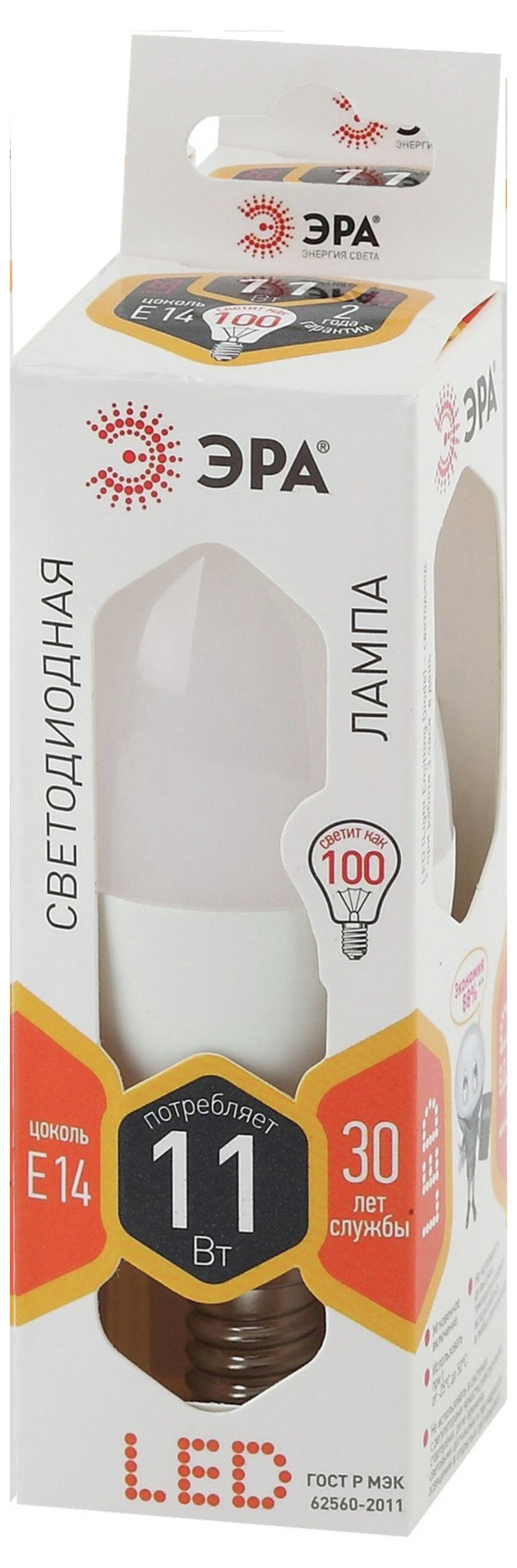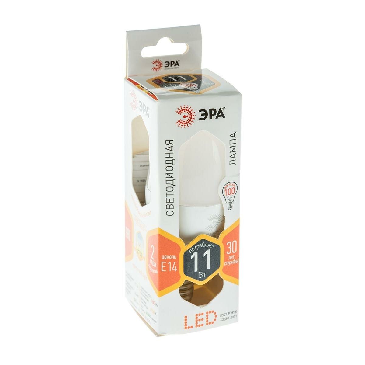 Лампочка светодиодная ЭРА STD LED B35-11W-827-E14 E14 11Вт свеча теплый белый свет арт. Б0032980 (1 шт.)
