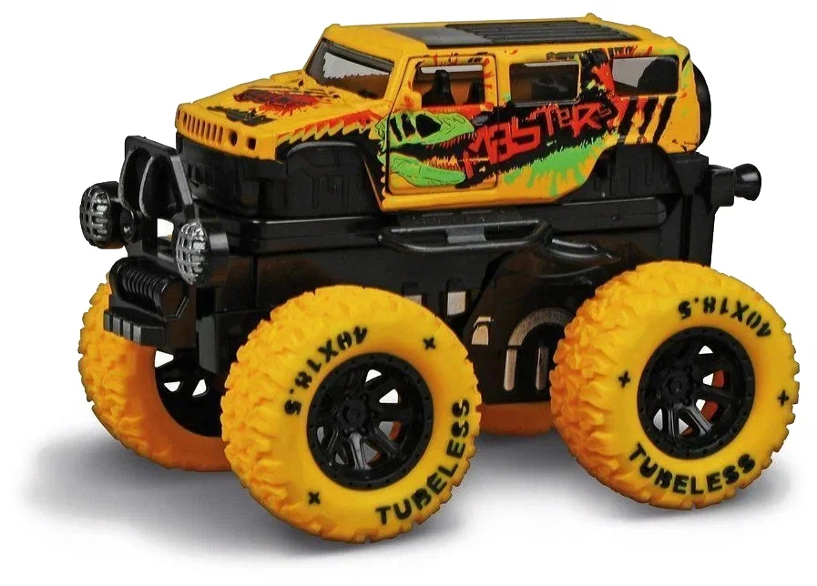 Монстр трак Краш-тест, мет., ин.мех-м 4х4, откр.двери, свет, звук, подпрыгивает на стойках, отлетает кабина, жел.