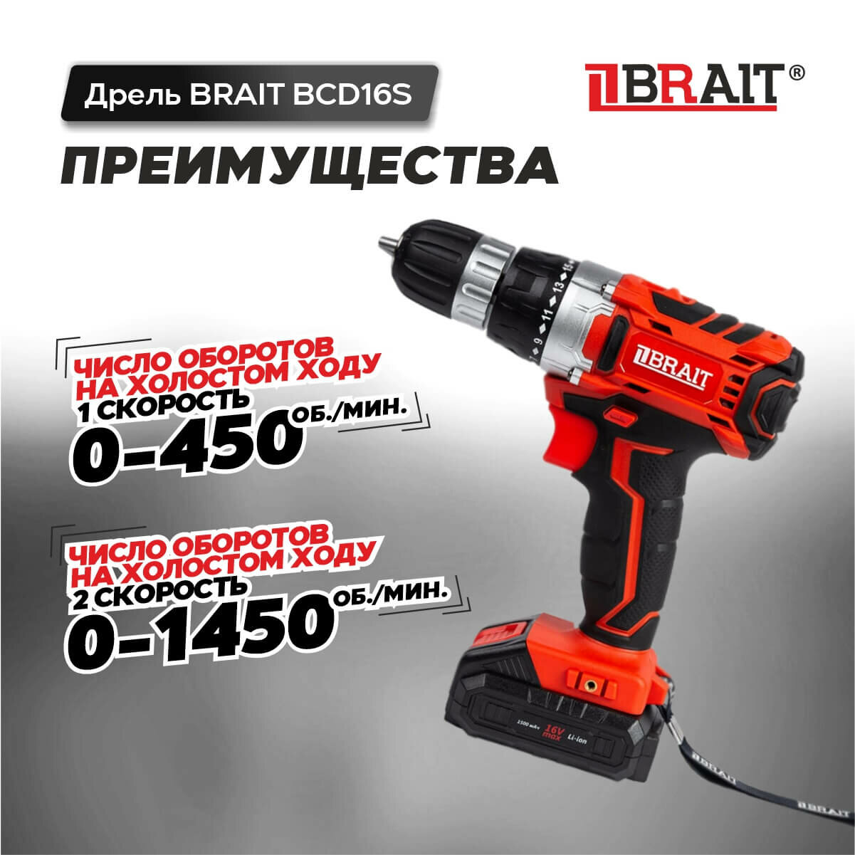 Дрель аккумуляторная BCD16S (14,4В Li-ion, 2 аккумулятора 1,5Ач, 2 скорости, 26Нм, индикатор заряда) интересное: