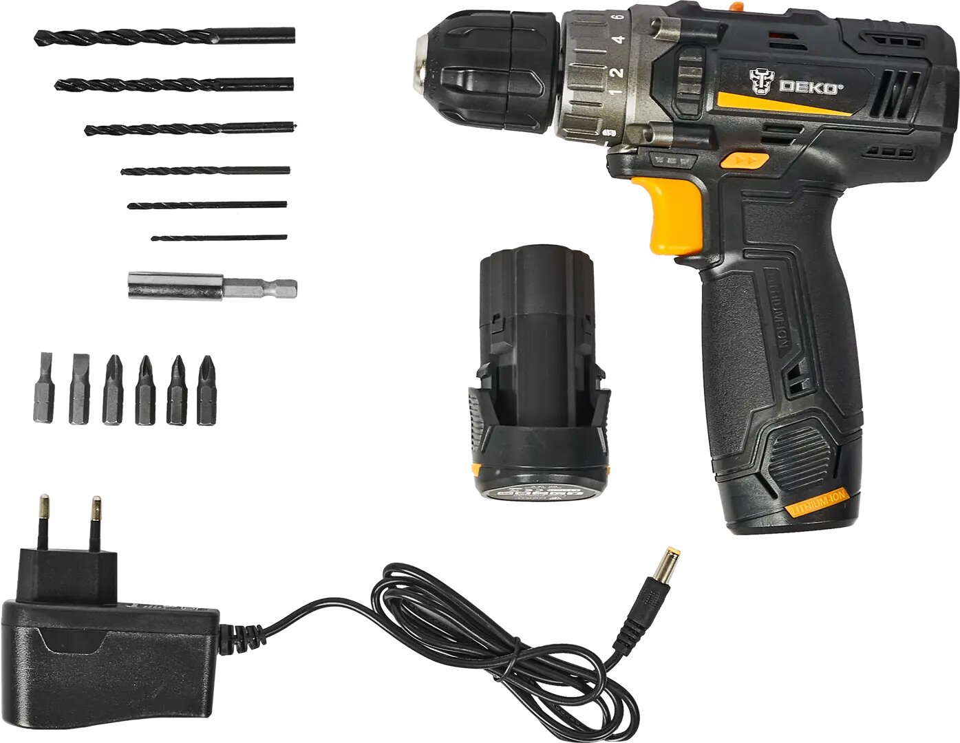 Дрель-шуруповерт аккумуляторная Deko GCD12DU3, 12 В Li-Ion 2х2 Ач