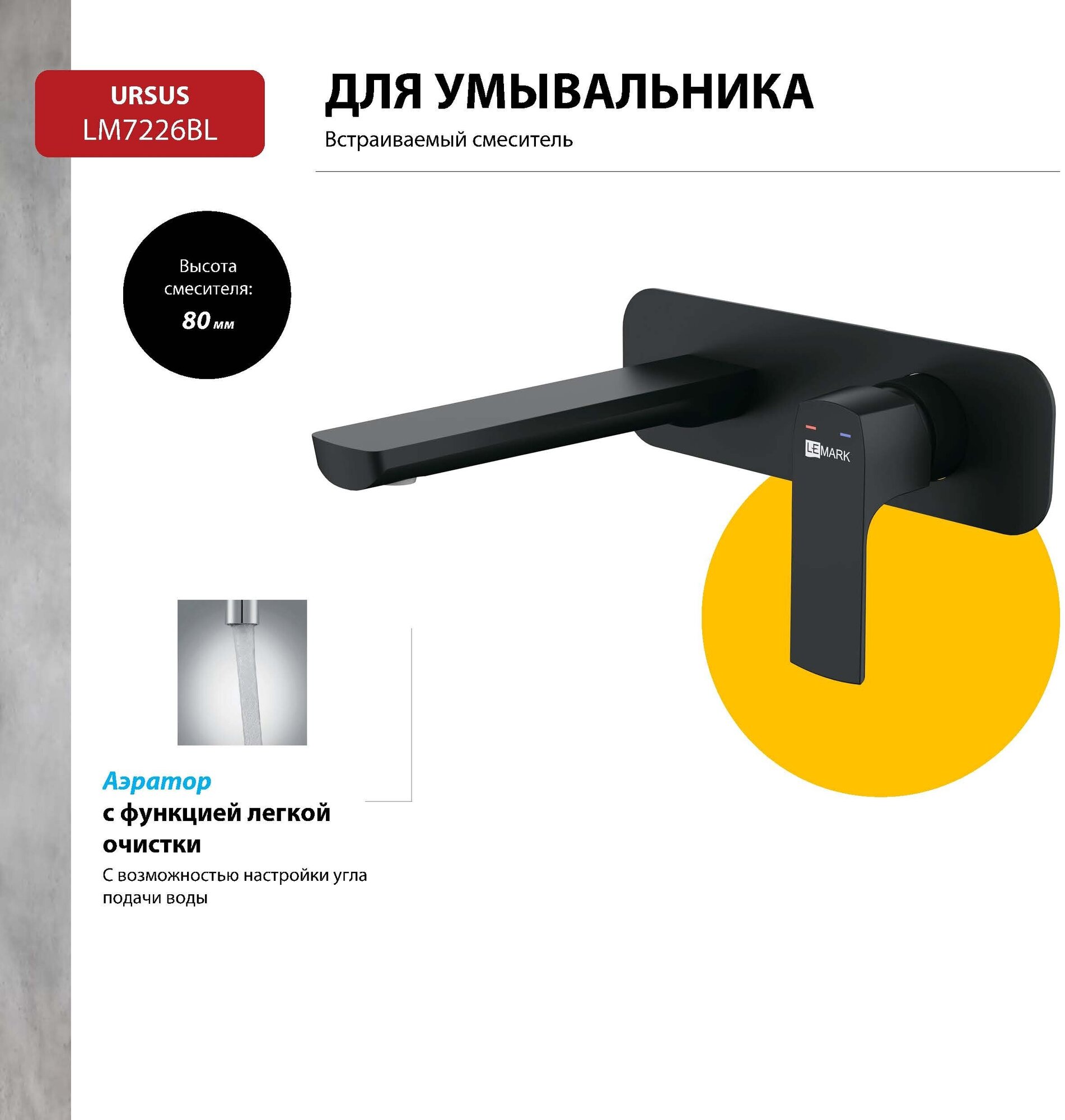 Смеситель Lemark Ursus LM7226BL для раковины, встраиваемый