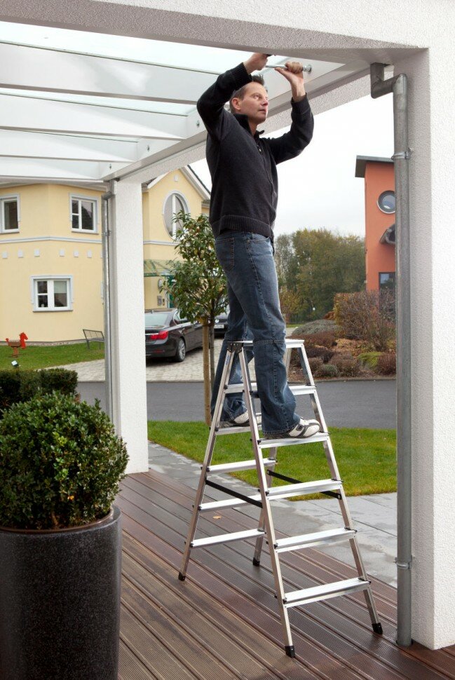 СохранитьDOPPLO Двусторонняя стремянка, 2х6 ступенек, раб. высота 2,86 м интересное: